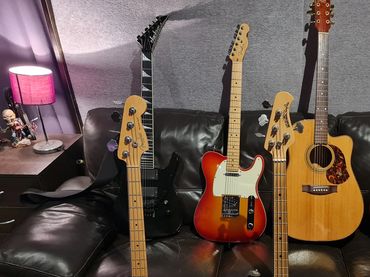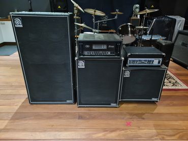 2 studio Standard Bass Guitars, Fender P bass and Musicman Stingray plus a Ampeg SVT 2 Pro Amplifer with Ampeg 8 By 10, 4 By 10 and 1 by 18 Cabinets.
